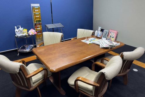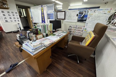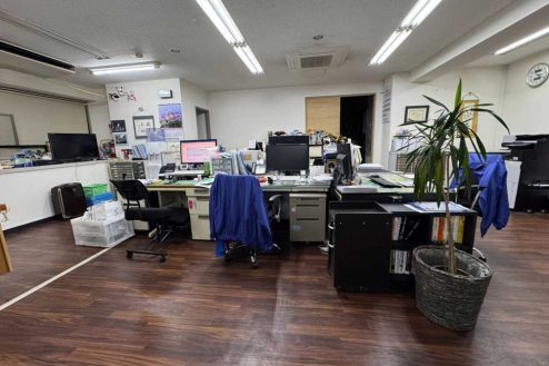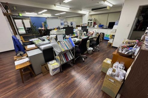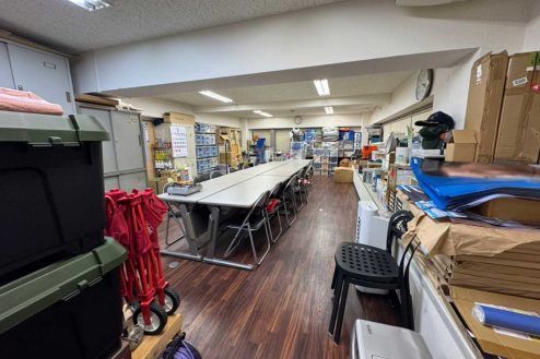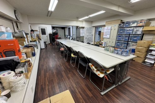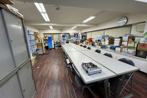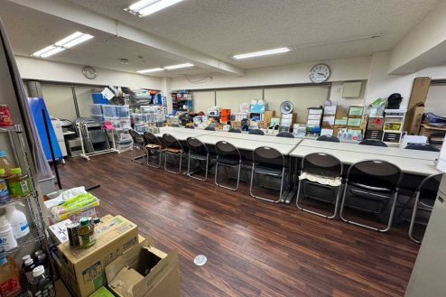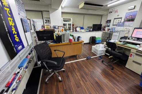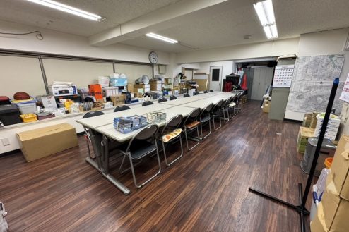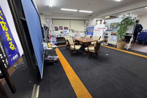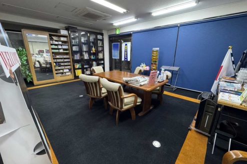 所沢市にある議員事務所。事務デスク、長テーブルに椅子、応接スペース、ポスターや公約、ホワイトボード、拡声器など議員事務所・選挙に必要な備品が揃っています。