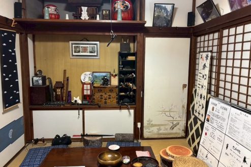 戦国時代、実際に忍びが活躍した東京の山里でリアルな忍術が学べる忍術道場。玄関、居間、和室、外観、庭(手裏剣の練習場)、外観など撮影可能。本格的な忍び道具も揃っています。自然に囲まれたロケーション。
